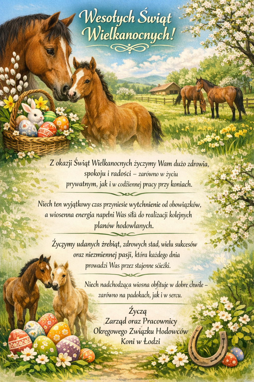 🌷 Życzą Zarząd oraz Pracownicy Okręgowego Związku Hodowców Koni w Łodzi 🌷